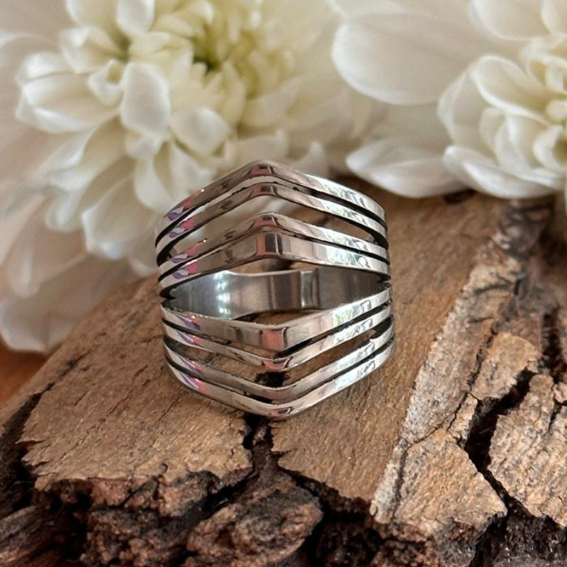 Anillo en acero quirúrgico 316 con excelente terminación de pulido. (En caso de detalles pueden estar combinados con strass o letras esmaltadas)