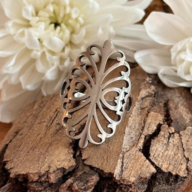 Anillo en acero quirúrgico 316 con excelente terminación de pulido. (En caso de detalles pueden estar combinados con strass o letras esmaltadas)