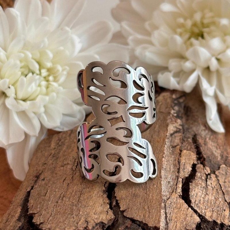 Anillo en acero quirúrgico 316 con excelente terminación de pulido. (En caso de detalles pueden estar combinados con strass o letras esmaltadas)