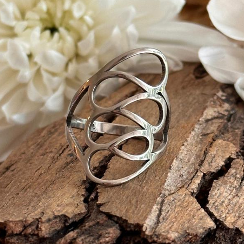 Anillo en acero quirúrgico 316 con excelente terminación de pulido. (En caso de detalles pueden estar combinados con strass o letras esmaltadas)