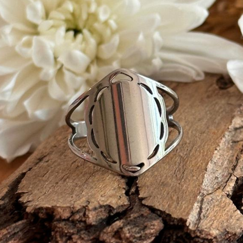 Anillo en acero quirúrgico 316 con excelente terminación de pulido. (En caso de detalles pueden estar combinados con strass o letras esmaltadas)