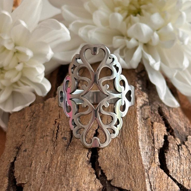 Anillo en acero quirúrgico 316 con excelente terminación de pulido. (En caso de detalles pueden estar combinados con strass o letras esmaltadas)