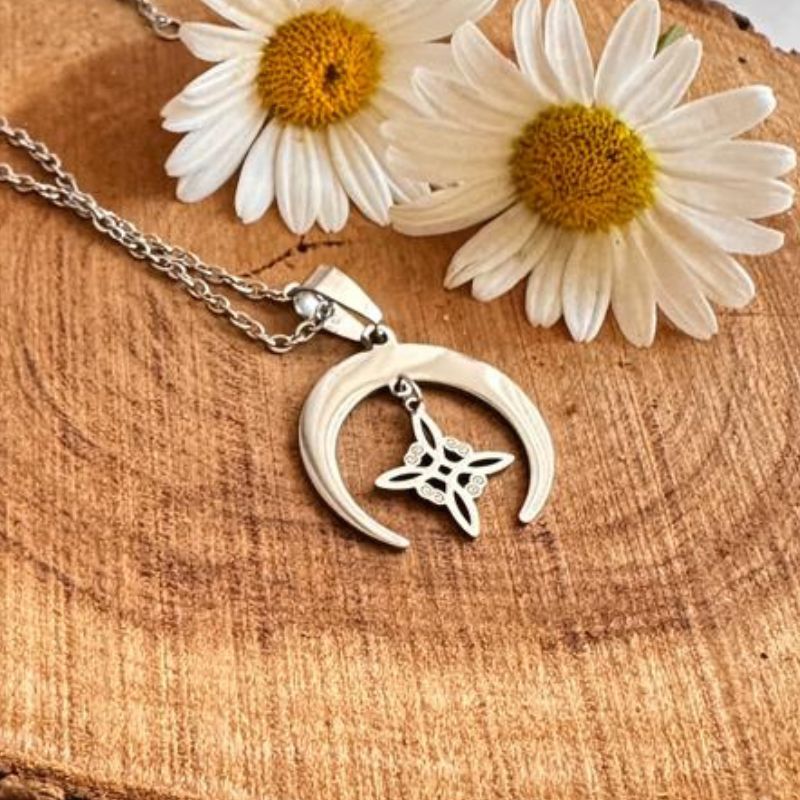 Collar y dije en acero quirúrgico + cadena rolo de 45 cm de largo aprox +2,5 mm de grosor + excelente pulido.