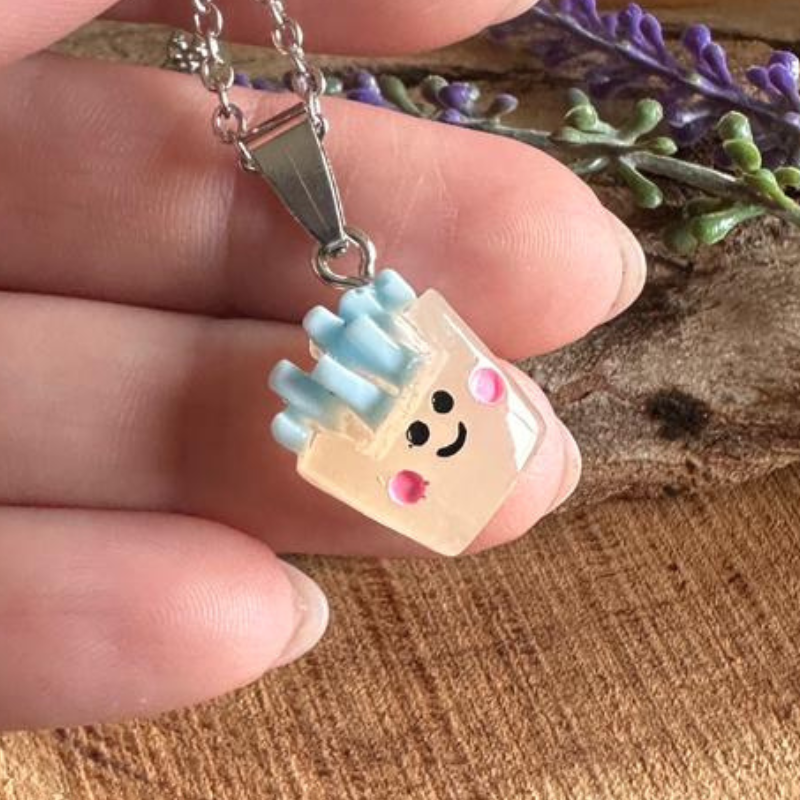 Collar de 50 cm de largo y 0.5 de grosor en acero quirúrgico + dije en resina + drop de zamac.