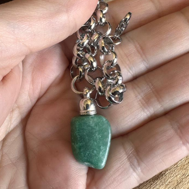 Collar con piedra natural chica + cadena en acero quirúrgico + capuchon, dije y drop en zamac+ TARJETA COLOR CON SIGNIFICADO.
